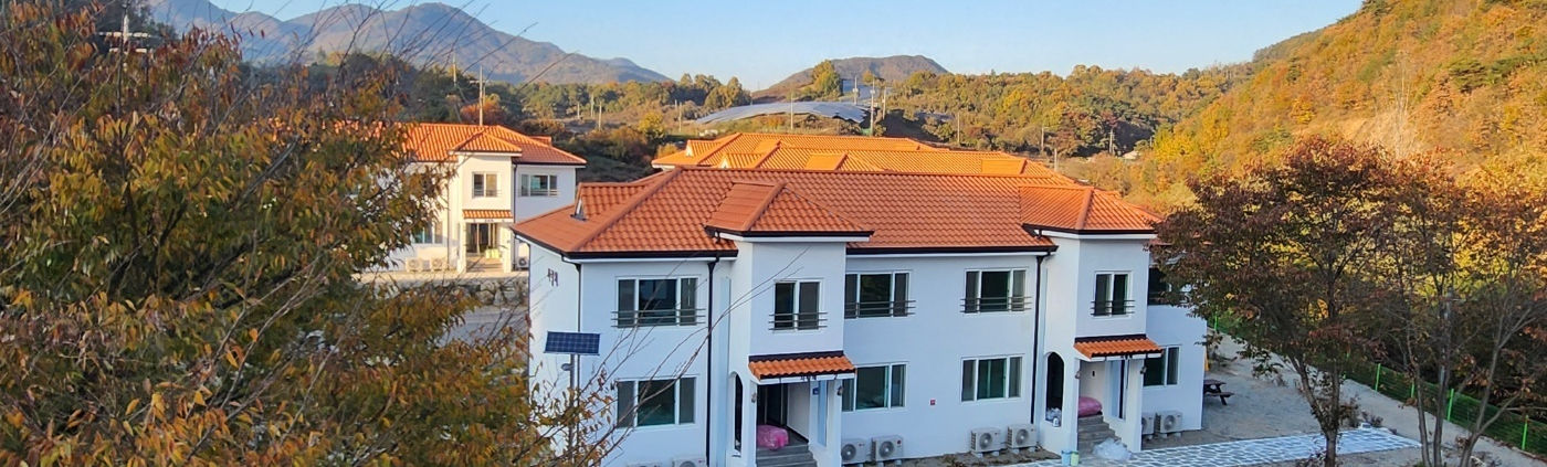 The old "Hiwell Condominium", which had been neglected for about 10 years, was purchased and upcycled, and transformed into a relaxation space with a capacity of 150 people, consisting of 3 buildings (Mulbit-dong/Haetbit-dong/Healing-dong), 2 seminar rooms, and 35 rooms.